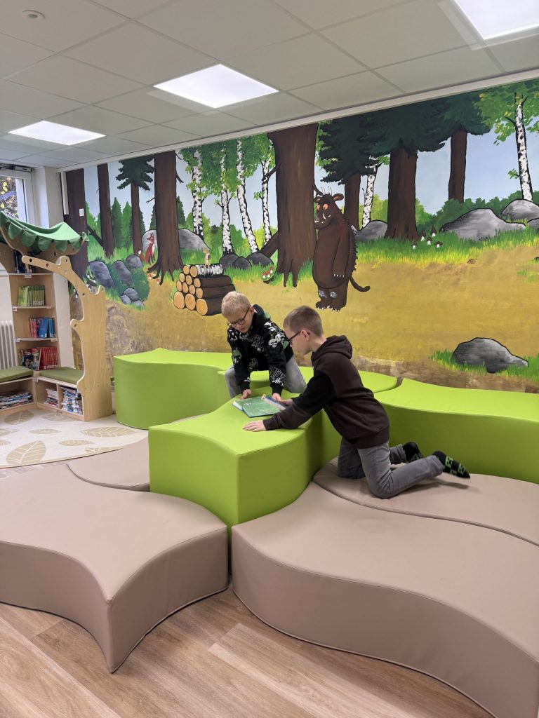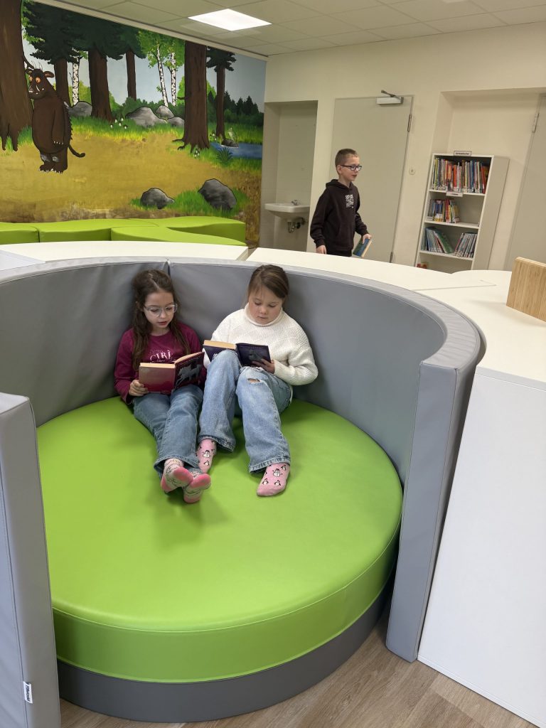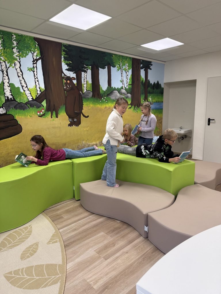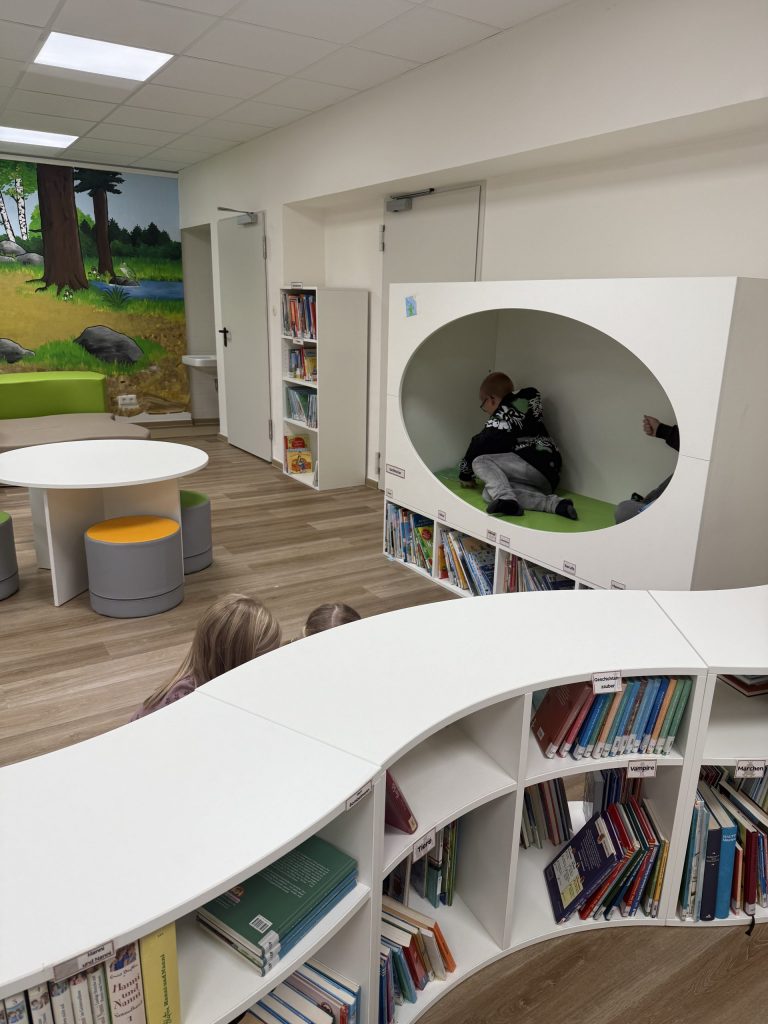 Endlich ist unsere Bücherei fertig. Alle Schülerinnen und Schüler freuen über den schönen neuen Raum mit einer tollen Auswahl an Lesefutter.